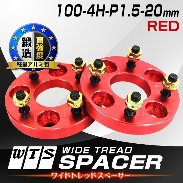 Durax ワイドトレッドスペーサー ワイトレ スペーサー 20mm レッド 赤 100-4H-P1.5 4穴 トヨタ 三菱 ホンダ マツダ いすゞ ダイハツ 2枚セット