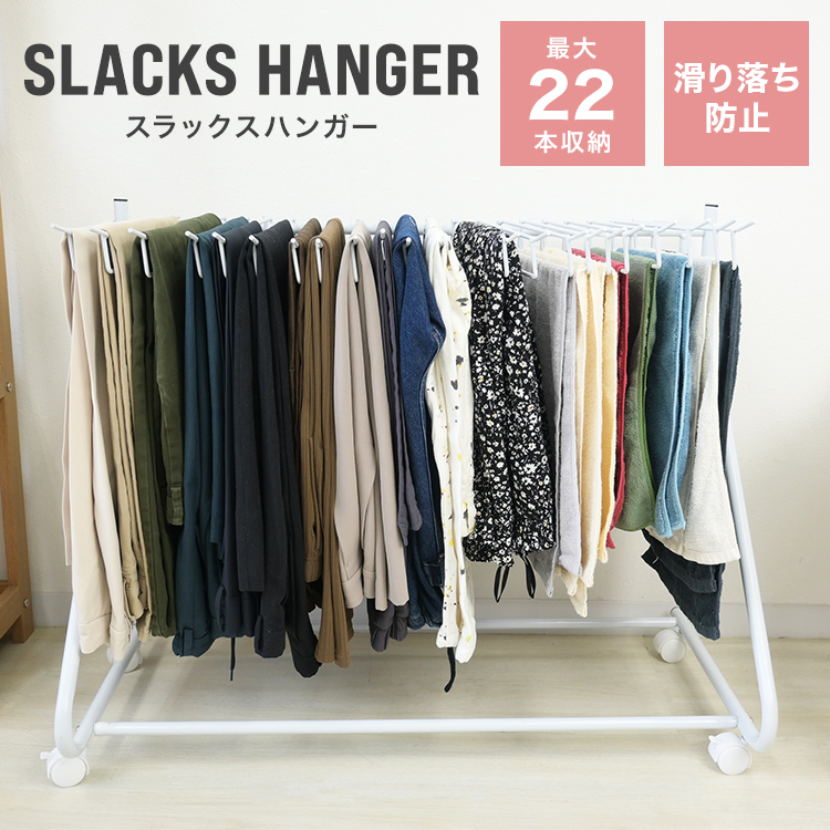 ハンガーラック スラックスハンガー 22本掛け 大容量 パンツラック キャスター スリム コンパクト ズボンハンガー