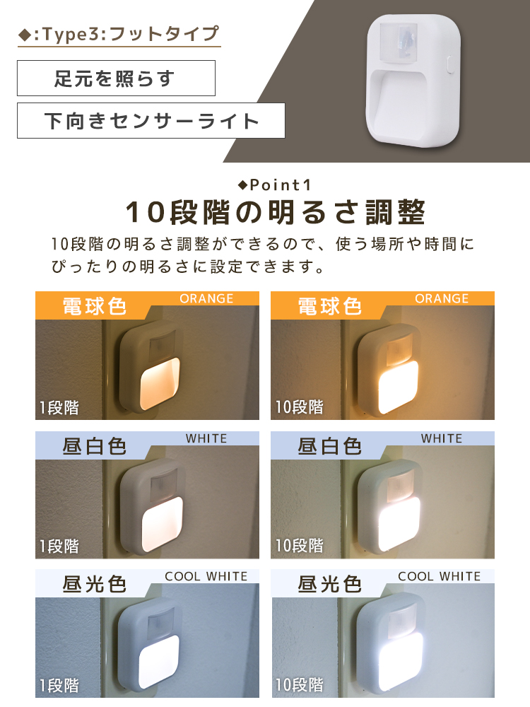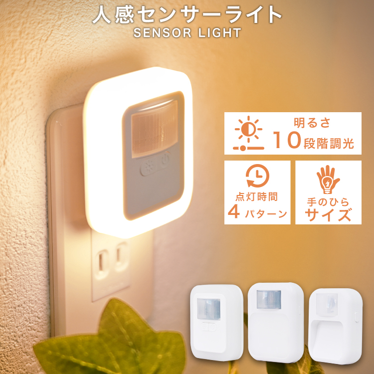 センサーライト LED 室内 コンセント 人感センサーライト 人感センサー 明暗センサー 10段階明るさ調節 点灯時間設定 省エネ おしゃれ フットライト