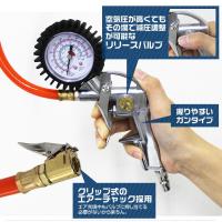 エアコンプレッサーとの接続で、自動車やバイクなどのタイヤに、エアを充填するためのエアタイヤゲージです。