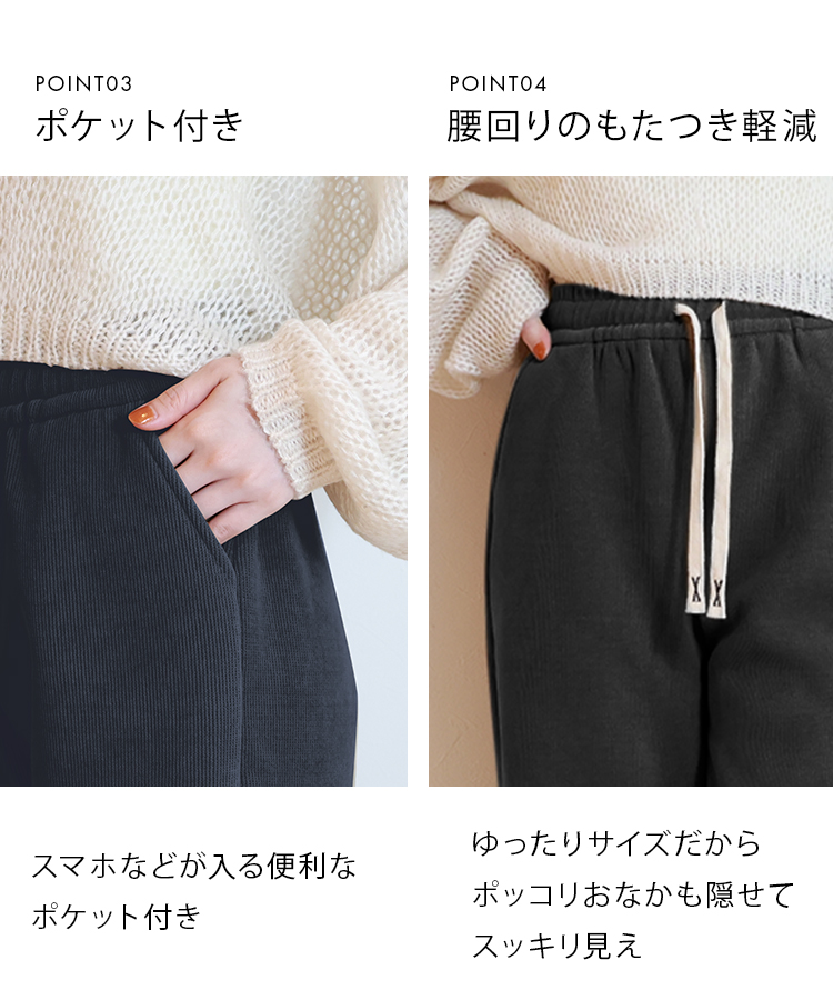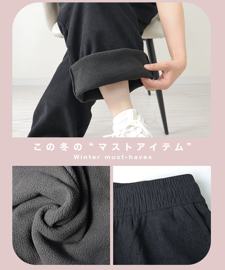 新作 ワイドパンツ レディース パンツ 裏起毛 コーデュロイ 裏ボア リブ シンプル おしゃれ オシャレ きれいめ 無地 ズボン ゆったり