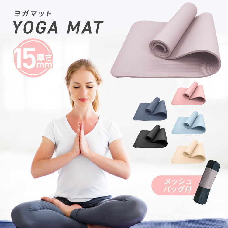 ヨガマット 15mm トレーニング 厚手 ホットヨガ ピラティス ストレッチ ダイエット 収納ケース付き 健康 エクササイズ 体幹 筋トレ 負担軽減 全8色 WEIMALL