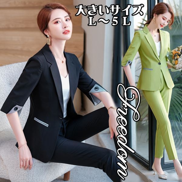 大きいサイズ スーツ オフィス ビジネス 制服 オシャレ洗練感ジャケット&パンツの2点セットアップレディーススーツ L 2L 3L 4L 5L サイズ セール