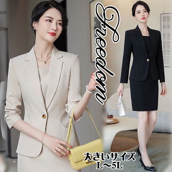 大きいサイズ スーツ フォーマル OL 就活スーツ シンプルスタイル!長袖ジャケット&ワンピースの2点セットレディーススーツ L 2L 3L 4L 5L サイズ セール
