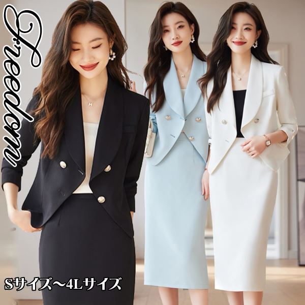スーツ OL オフィス 卒業式 入学式 様々なシーンに!きれいめジャケット&ミモレ丈スカートの長袖セットアップ2点セット S M L 2L 3L 4L サイズ セール