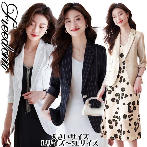 大きいサイズ ジャケット OL 卒業式 入学式 着こなし自在!シンプルきれいめデザインのストライプ柄ジャケット単品 L 2L 3L 4L 5L サイズ セール