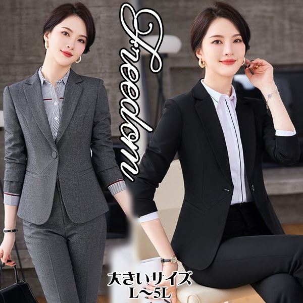 大きいサイズ スーツ OL 卒業式 入学式 スタイリッシュデザイン!ジャケット&パンツのレディーススーツ2点セット L 2L 3L 4L 5L サイズ セール