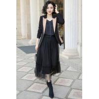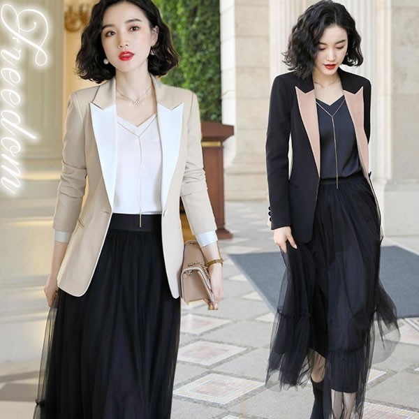 大きいサイズ スーツ OL オシャレ お出かけ 卒業式 入学式 チュールスカートスタイルの2点セットサイドカラー切替レディーススーツ 2L 3L 4L 5L サイズ セール