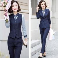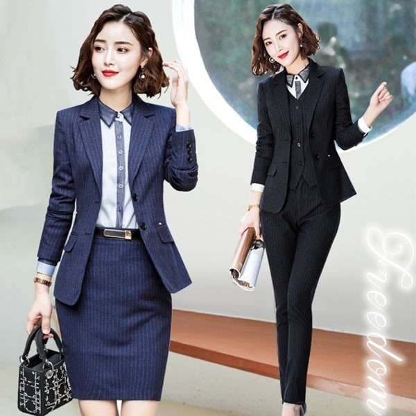 大きいサイズ 卒業式 パンツスタイルorスカートスタイルの3点セット!ベスト付ストライプ柄ベーシックデザインレディーススーツ 2L 3L 4L 5L サイズ セール