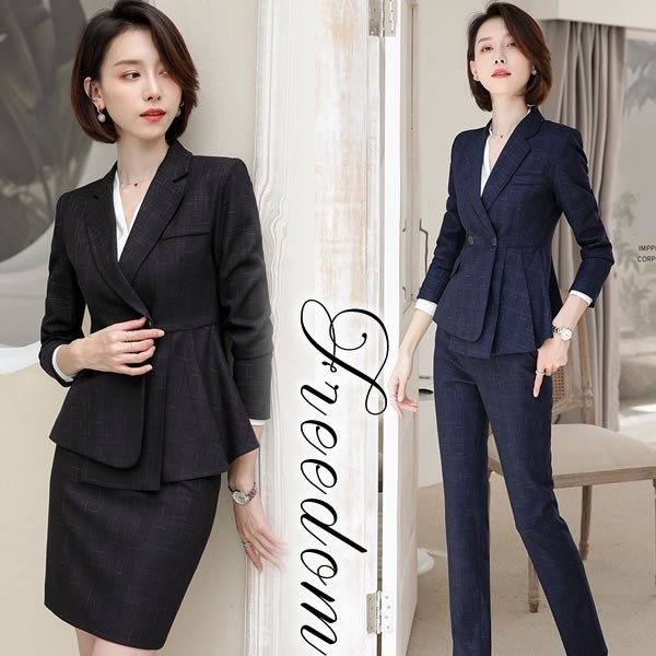 大きいサイズ スーツ 卒業式 パンツスタイルorスカートスタイルの2点セット!格子柄タック使いジャケットレディーススーツ 2L 3L 4L 5L サイズ セール