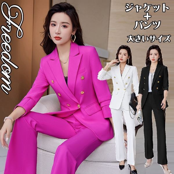 大きいサイズ スーツ フォーマル オフィス OL ダブルブレストジャケット&ブーツカットパンツの2点セットレディーススーツ L 2L 3L 4L 5L サイズ セール