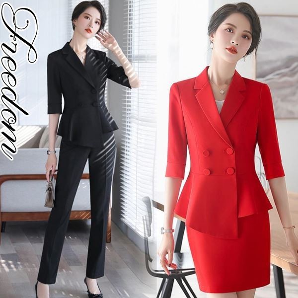 大きいサイズ スーツ 卒業式 パンツスタイルorスカートスタイルの2点セット!フレアデザインダブルジャケットレディーススーツ 2L 3L 4L 5L サイズ セール