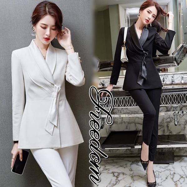大きいサイズ スーツ フォーマル OL 入学式 卒業式 ウエストリボン使いジャケット&パンツ2点セットレディーススーツ 2L 3L 4L 5L サイズ セール