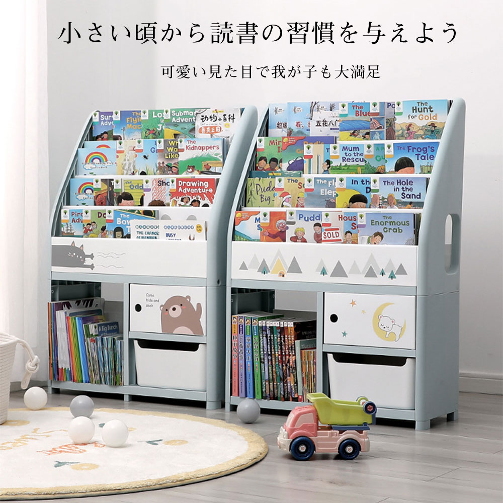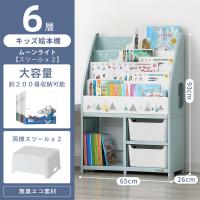 キッズ 絵本棚 絵本 ラック 本棚 6層 スツールx2 椅子付き 大容量 200冊 収納 組み立て簡単 角丸く加工 ベビー 本棚 子供用 プレゼント 入園 祝い 誕生日