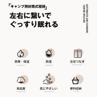 繋げるアウトドア用寝袋: 四季によって選べる豊富なバリエーション。左右に繋げる設計で家族や友人、カップルでキャンプや登山などのアウトドア活動に最適。コンパクトサイズで収納や持ち運びも便利なデザイン。