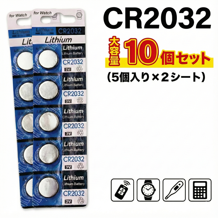 CR2032 リチウムボタン電池 10個セット 3V コイン電池 スマートキー リモコン 時計 電卓 体温計 補聴器 おもちゃ ゲーム 交換用 業務用 まとめ買い 送料無料