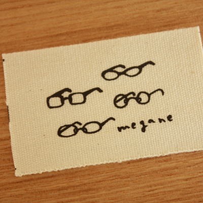 ハンドメイドに 布タグ 5枚セット 綿平織 32〜35mm横- めがね (黒)