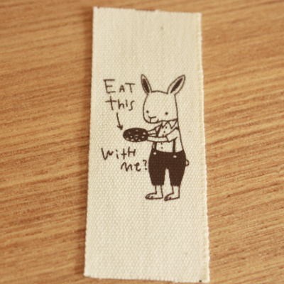 ハンドメイドに 布タグ 5枚セット 綿平織 25mm縦- holiday うさぎくんとドーナツ