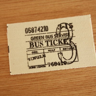 ハンドメイドに 布タグ 5枚セット 綿平織 32〜35mm横- バスチケット(黒)