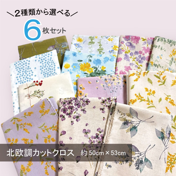 カットクロス 6枚 セット 約53cm × 50cm 北欧風 綿麻シーチング 綿麻キャンバス モーメント nina はぎれ