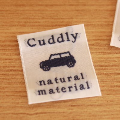 5枚セット刺繍タグ25mm縦-cuddlyくるま(白×紺)
