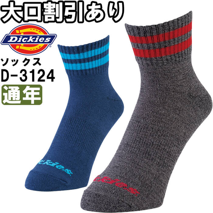 作業服 ディッキーズ Dickies 制菌ロークルーソックス2P D-3124 フリー 通年 制菌 2足組 先丸 靴下 作業着 メンズ