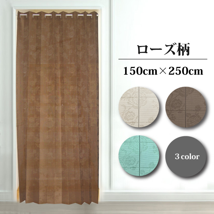 アコーディオンカーテン ローズ柄 250cm 150×250cm のれん ぱたぱた つっぱり 間仕切り カーテン 部屋 階段 目隠し ベージュ ブラウン グリーン 【当店発送】