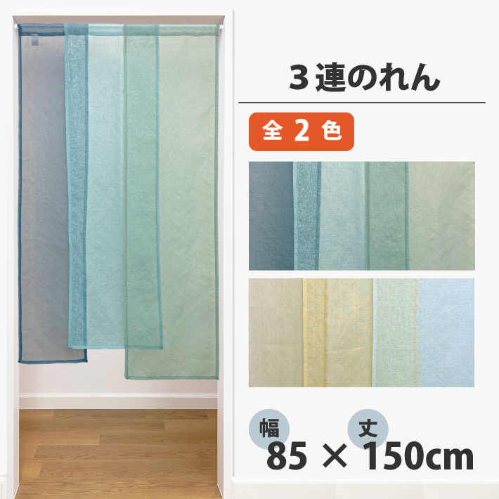 のれん ブリーゼ 85×150cm 暖簾 3連のれん 無地 シンプル 北欧 おしゃれ 間仕切り 目隠し インテリア 部屋 85cm幅×150cm丈 ブルー イエロー メール便