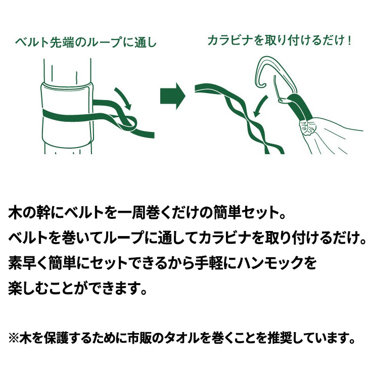 木の幹にベルトを巻くだけ! 簡単セットハンモック
