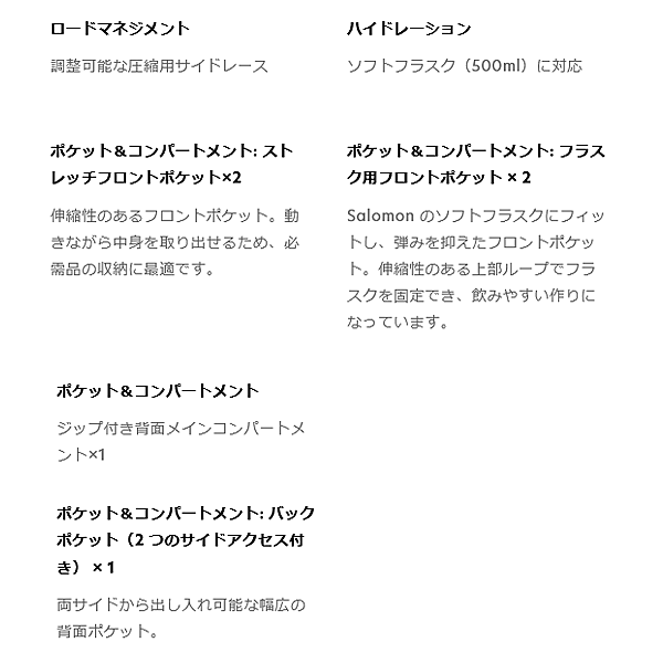 ・ハイドレーションシステム搭載:ソフトフラスク付き