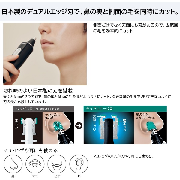 ・「デュアルエッジ刃」で鼻の奥と側面の毛を同時にカット