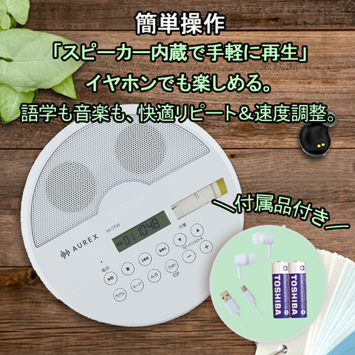 ・電池持続時間:東芝単3形アルカリ乾電池×2本使用時/スピーカー使用時=約4時間、イヤホン使用時=約8時間(使用状態により異なります)