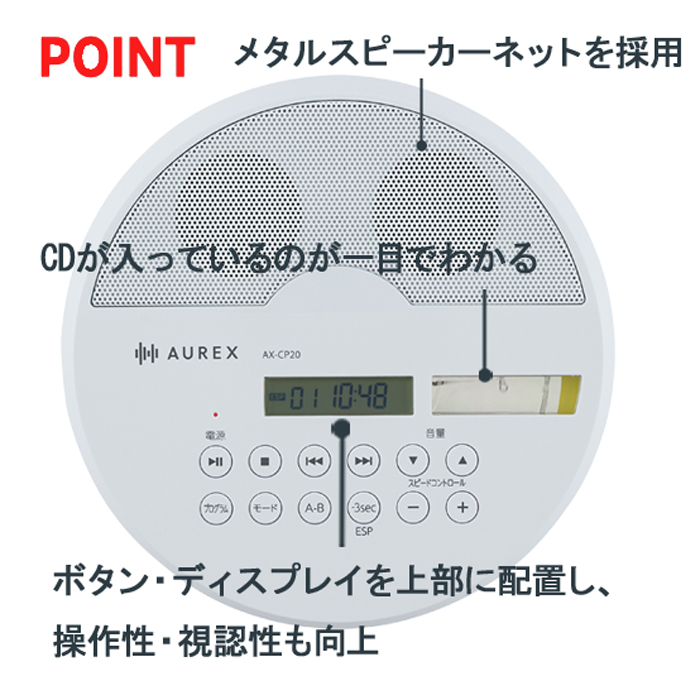 新たにニッケル水素充電池の充電機能を追加。CDが入っているか一目でわかるCD窓を新設、ボタン・ディスプレイを上部に配置することにより、操作性・視認性も向上。