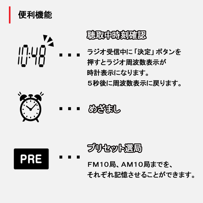 デジタルチューナーを搭載しているので選局も簡単です。