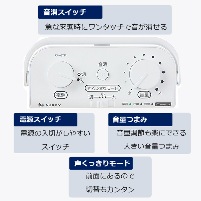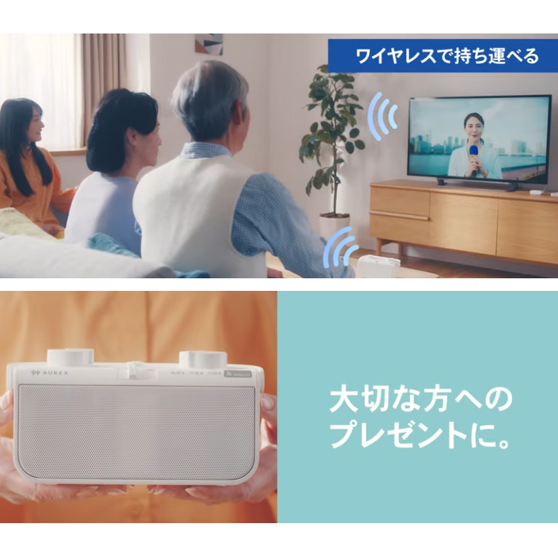 充電台と送信機が一体化していると、充電のたびにスピーカーをテレビ周辺に戻す必要がありますが、充電台と送信機が別になっているため、充電台をお好みの場所へ設置でき、充電の際に受信本体(スピーカー)を、テレビ周りに戻す手間がなく、手元で使用しながら充電することができます。