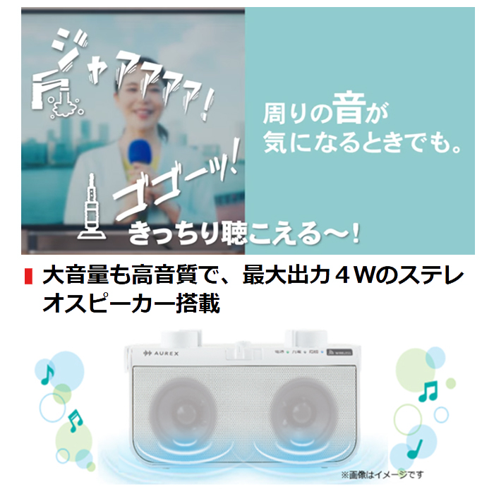 ■ 高出力、大口径スピーカーを採用。ボリュームをあげても、音割れが生じにくいため、いつでも心地よい音質で楽しむことができます。