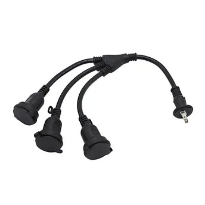 1本の防水延長コードを3分岐して利用できるようにするコード