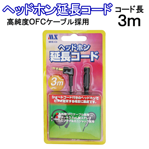 延長コード 3m ミニプラグ 3.5φ マクサー製 MHE-C3