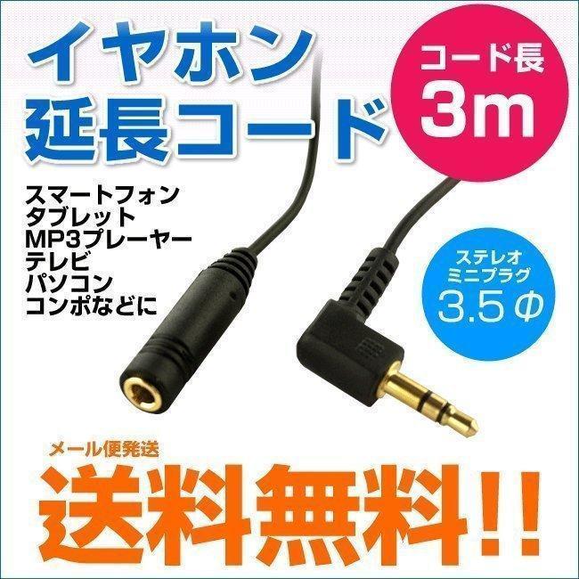 イヤホン 延長コード 3m イヤホンジャック 有線 長い ケーブル 高音質 ヘッドホン テレビ などに メール便 送料無料