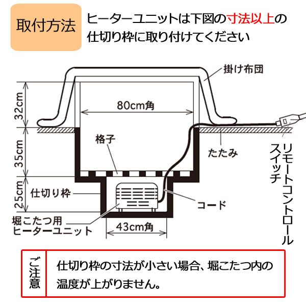 ※堀こたつには、専用ヒーターを使用ください