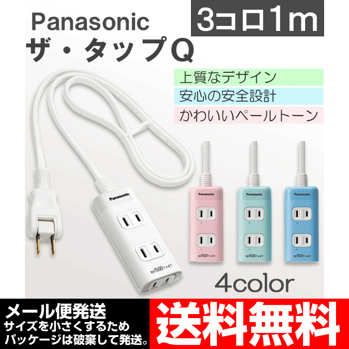 延長コード 1m 3コ口 パナソニック ザ・タップQ WHA2413 カラー4色 メール便送料無料