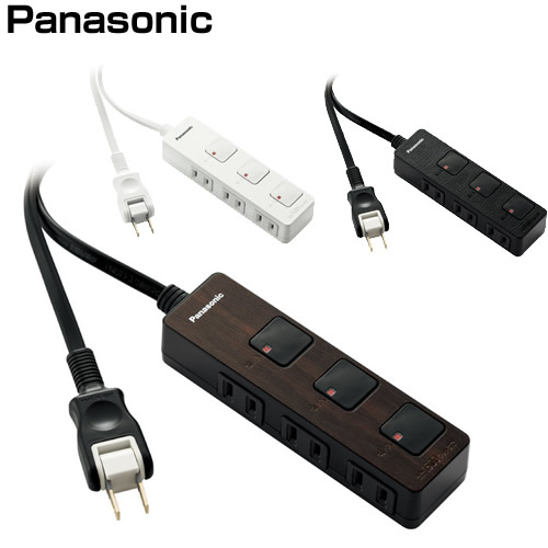 延長コード パナソニック 2m コンセントタップ panasonic 3口 おしゃれ オシャレ 木目柄 牛革柄 茶色 黒 白 送料無料 パッケージ破棄 WHF2323