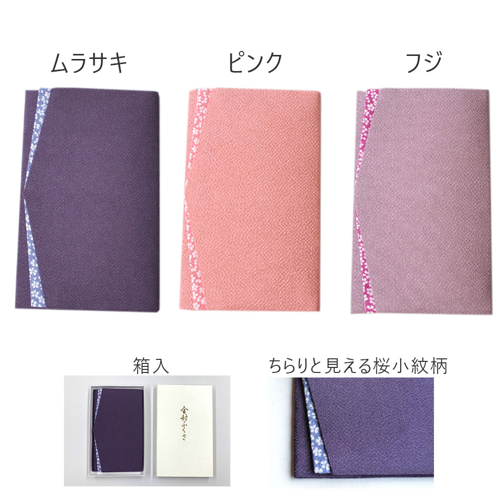 ちりめん 桜小紋 金封ふくさ ふくさ 箱入り むす美 袱紗 ギフト 女性 冠婚葬祭 ムラサキ 紫 エンジ ピンク フジ 藤色 ギフト
