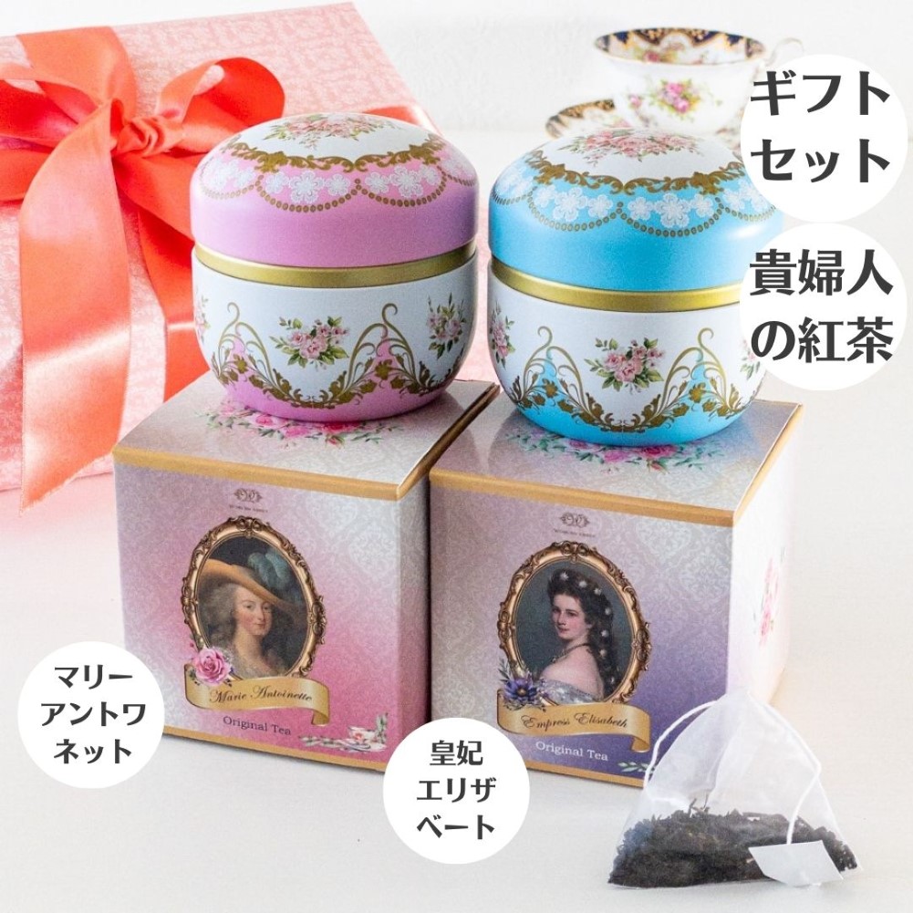 【18〜19世紀の歴史上の貴婦人をイメージした紅茶】マリー・アントワネットや皇妃エリザベートなどヨーロッパの気品のあるプリンセスから着想を得たオシャレな紅茶。これはヨーロッパの2大有名貴婦人のセットです。