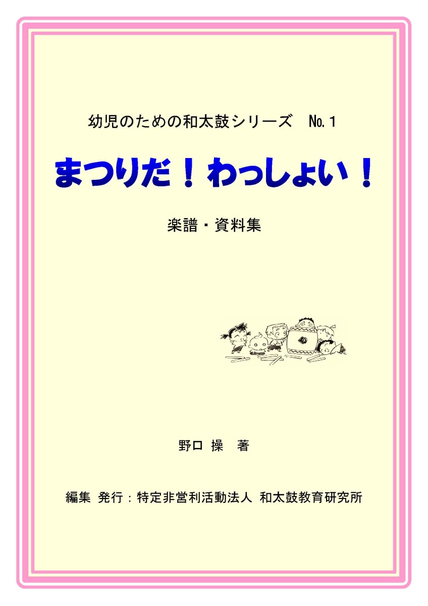 はねるリズムをベースに、「わっしょいわっしょい!まつりだわっしょい!」と声を出しながら、エクササイズのように心も身体もはずんで楽しんでいるうちに、いつの間にかとっても楽しい演奏が出来上がります。和太鼓が初めての先生も自信をもって取り組める曲です。簡単なのに楽しい!みんなできる!目からウロコの内容です。 ページ数:5P幼児のための和太鼓シリーズ 楽譜・資料集 ◆著作:野口 操 ◆発行:特定非営利活動法人 和太鼓教育研究所 伝統演目をアレンジしたものから、創作の太鼓まで、実際の保育の現場で先生・子どもたちと共に創り、指導を行ってきたものばかりをそれぞれ楽譜と解説(ことば譜)でまとめてみました。一度講習を受けた方には手放せない内容ばかりですし、実践したことのない方にもわかるようにできておりますので、これから始めたいと考えておられる先生の大きな手掛かりとなる資料集楽譜集です。