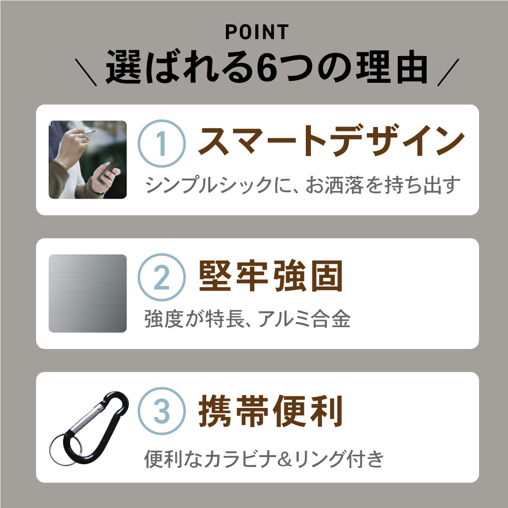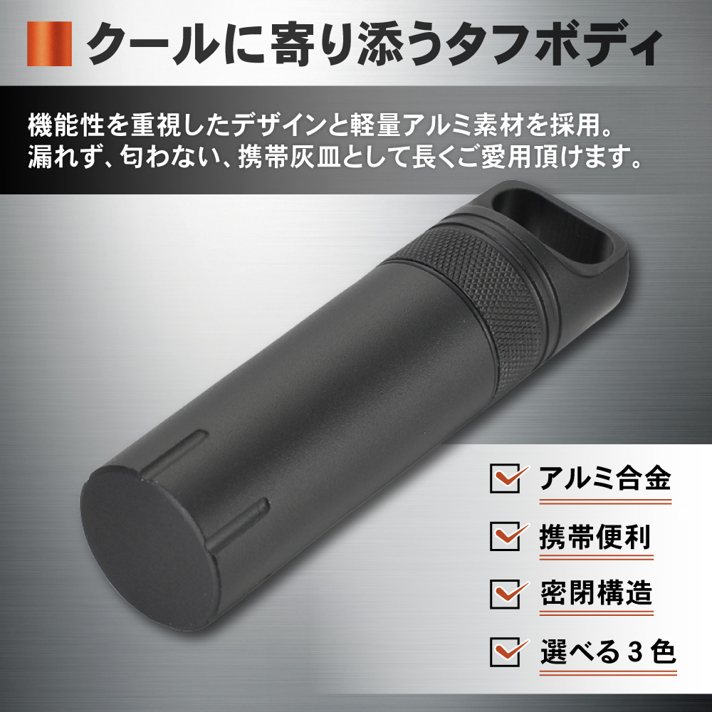 | 特徴 | 密閉、軽量、 。 クールに寄り添う、アルミボディ。 携帯便利、密閉構造、選べる3色、携帯灰皿アッシュケース。 ・POINT.1 「スマートデザイン。」 ・実用性にこだわったデザインは、見た目もクール。 シンプルシックにあなたに寄り添い、お洒落を携帯。 カッコよさを持ち運ぶ。ポータブル型アッシュトレイです。 ・POINT.2 「堅牢強固。」 ・強度と耐食性に優れた6061アルミ合金を採用。 自動車にもよく使われる素材で、あらゆるシーンに対応OK。 雨でも雪でも、タフに寄り添う、アルミ合金タバコホルダー。 ・POINT.3 「携帯便利。」 ・持ち運びに便利なカラビナ&ステンレスリングを付属。 鞄にジーパン、キーホルダー、お好きな所に取付けOK。 いつでもどこでも、気軽に携帯。喫煙アッシュシリンダー。 ・POINT.4 「煙が漏れない。」 ・密閉構造が特長のネジ式キャップを採用。 煙や臭いの漏れを防いで、外部環境にもタフに対応。 漏れず、臭わず、しっかり密閉。防水仕様のアルミ灰皿です。 ・POINT.5 「選べる3色。」 ・シーンに合せて、好みに合せて。 ブラック、オレンジ、シルバーグレーの3色をご用意。 是非、お客様の喫煙スタイルに合ったカラーをお選び下さい。 ・POINT.6 「多用途活用。」 ・ドライブ、キャンプに、アウトドア……。 シンプルクールなデザインが、どこに置いてもピタッと決まる。 いつでもどこでもアナタに寄り添う、スマート煙草ケースです。 漏れず、匂わず、 。 シンプルシックに、お洒落を持ち出す。 高質、軽量、アルミ素材。愛煙家向け、携帯灰皿。 (このような商品をお探しのかたに) 携帯灰皿 ロング ふた付き おしゃれ 携帯用 灰皿 ポータブル アッシュトレイ アイコス icos アッシュケース アルミケース 小物入れ 吸い殻入れ メンズ レディース スリム たばこ ケース タバコ 入れ 煙草入れ 喫煙 アッシュシリンダー 防水 小物 キーホルダー カラビナ リング 付属 スリム ポケット携帯灰皿 選べる 3色 ブラック オレンジ シルバーグレー 黒 橙 銀 灰色 |