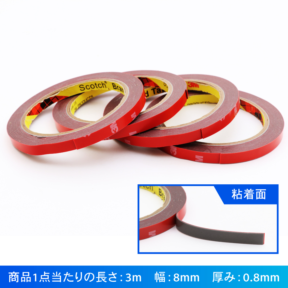 | 商品名 | 3Mテープ 強力両面テープ たっぷり 3メートル 3m 厚さ 0.8mm 幅8mm 車 ドレスアップ メッキ 外装 内装 補強 |