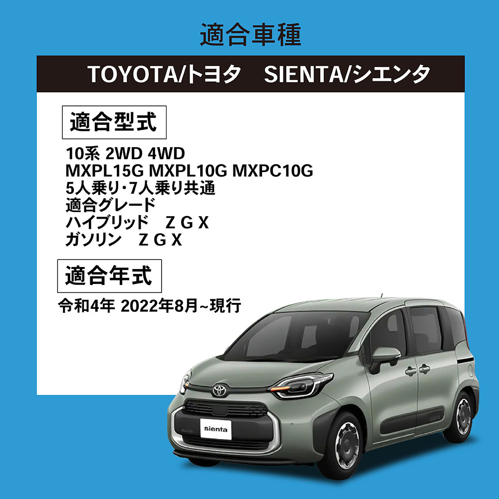 | 商品詳細 | [適合車種 ] TOYOTA/トヨタ SIENTA/シエンタ [適合型式 ] 10系 2WD 4WD MXPL15G MXPL10G MXPC10G 5人乗り・7人乗り共通 [適合グレード ] ハイブリッド Z G X ガソリン Z G X [適合年式 ] 令和5年 2023年1月~現行 [商品構成 ] ウィンドウスイッチパネル 4P [商品カラー ] シルバー・ブラック・カーボン [商品素材 ] ABS樹脂 注意)年式・グレード・オプション等により適合しない場合が御座います。 形状をご確認いただいた上、お買い求めください。 |