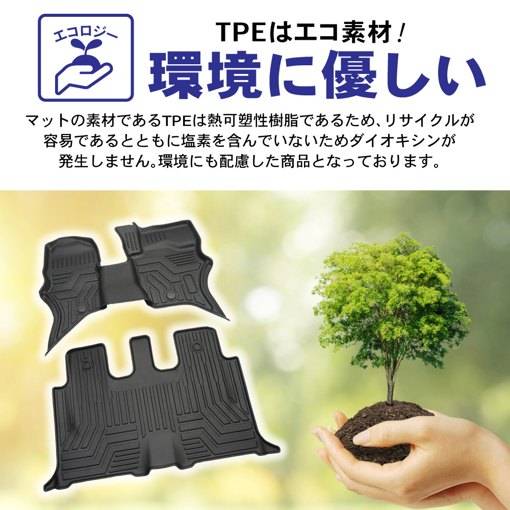 | 商品紹介 | 当店 大人気商品 圧倒的 の3Dマット ・POINT.1 「車種別専用設計 」 ジャストフィットでずれない専用設計となっております。 商品開発担当が現車から何度も施策を施し作成されたため、置くだけでピッタリフィットします。 泥・ホコリ・液体から車を守ります。また工具も一切不要なので、商品到着後すぐに設置が可能です。 ・POINT.2 「防水・防汚・防臭 」 マットが汚れたら水拭き、水洗いOKです。また耐候性に優れ、長時間使用しても表面劣化が起こりません。防水設計、衝撃と水気から保護し、耐水性と耐久性に優れた素材を使用し、取り外してお手入れも簡単です。 ・POINT.3 「3D立体構造 」 マットは完全防水&3D立体構造となっているため水や汚れを一切外に逃しません。 適度なクリップ力も備えているため雨の日でも です。 ・POINT.4 「最 の TPE or TPE素材を使用 」 マットに使用されている素材は のゴム素材です。-60℃〜100℃までの耐熱素材を持ち、長時間の使用でも劣化しません。 また通常のゴム製より硬く、質は天然のものと比較しても比べ物にならないほどの強さを持ってます ・POINT.5 「マットに使用されている素材は環境にも優しい 」 専用のゴム(TPE,TPE)素材は熱可逆性樹脂のためリサイクルが簡単であると共に塩素を含んでいないため、ダイオキシンが発生しません。 環境にも配慮した商品となっております。 「 デザイン 」「 耐久性 」「 使いやすさ 」を実現した AutoONE こだわりのマットで、様々なダメージから大切なお車を守ります |