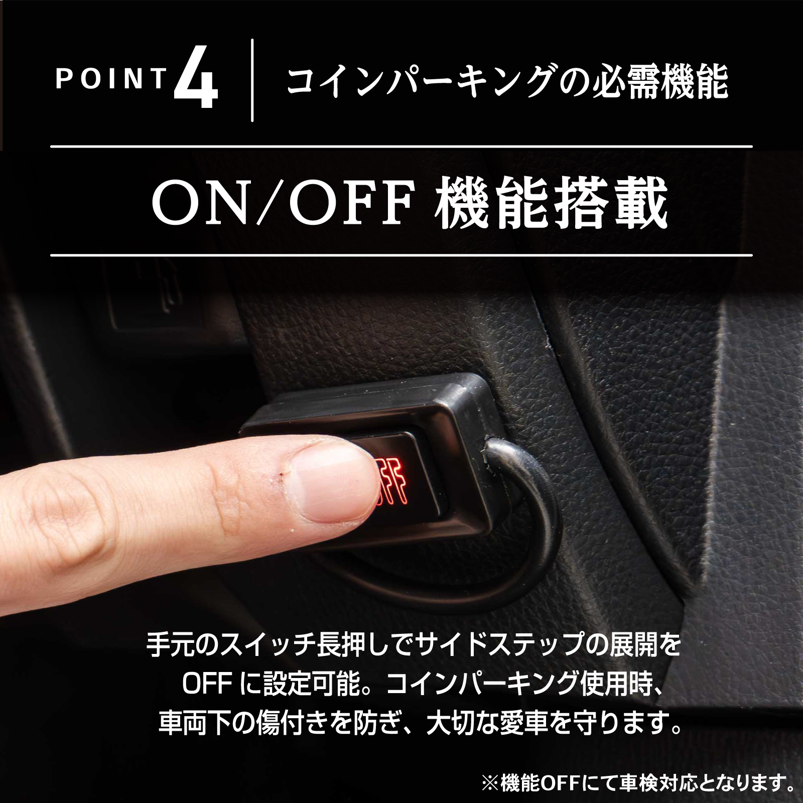 | 特徴 | 選ぶ人だけが手にする、上質な一歩 これはただのステップではない。 車の価値を引き上げ、乗り降りの利便性を極限まで高める。 この一歩は、選ばれた一部の人だけが手にできる唯一無二のもの。 Point1 「乗り降りラクラク」 ステップ位置が低いため、お子さんやお年寄りも乗り込みやすい。 幅も広く踏み外しにくい設計です。 Point2 「反転セーフティー機能搭載」 ステップが展開・格納時に障害物を感知すると、自動で動作を停止し元の位置に戻ります。 Point3 「車体への穴あけ不要」 純正のサイドステップの穴をそのまま活用し、加工なしで装着可能。 ランクル250の価値を損ないません。 注意)取り付けは、整備工場で行なってください。 Point4 「ON/OFF機能搭載」 手元のスイッチ長押しでサイドステップの展開をOFFに設定可能。 コインパーキング使用時、車両下の傷付きを防ぎ、大切な愛車を守ります。 Point5 「洗練されたボディライン」 無骨な印象から一新。 まるでアートのようなラインが、ランクルの存在感を格上げし、 自分だけのランクルを完成させる 「 デザイン 」「 機能性 」「 使いやすさ 」を実現した CRAFT WORKS こだわりの電動サイドステップで、快適なカーライフを |